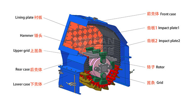 全篩分式篦條模塊化設(shè)計(jì),更換方便快捷,同時(shí)篦條圓弧面增加破碎面積,具有透孔率高,粒型好,成品率及多邊形物料占比極高,石粉量低等特點(diǎn)。