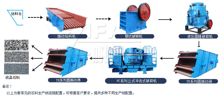 花崗巖破碎生產(chǎn)線具體配置方案: